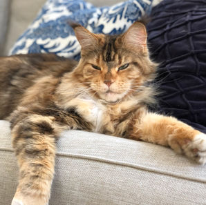 Selma är vår första Maine Coon som kommer från Polen. Då jag studerade i Polen så var det naturligt för mig att hämta henne därifrån då jag kände till ett antal uppfödare som har väldigt fina katter. När vi köpte Selma hade vi precis flyttat till hus och ville ha en stor, kelig, sällskaplig och lite hundlik katt som kunde springa in och ut som hon ville. Valet föll på Maine Coon rasen och när vi hittade Selma föll vi direkt. Hon är en riktigt duktig jägare som antagligen sätter skräck i de flesta djur i vår skog. Selma blev startskottet för att förverkliga min dröm om uppfödning men hon är inte aktiv i katteriet då hon är kastrerad.